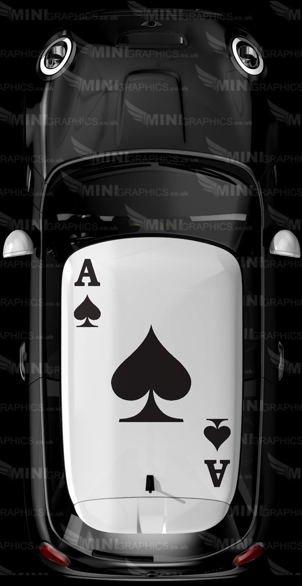 Ace of spades roof Graphic pattern. The design shows the cars colour as the background. The image shows Black vinyl on a White MINI.