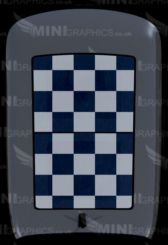 Checkered sunroof Graphic. The design shows the cars colour as the background. The image shows White vinyl on a glass sunroof.