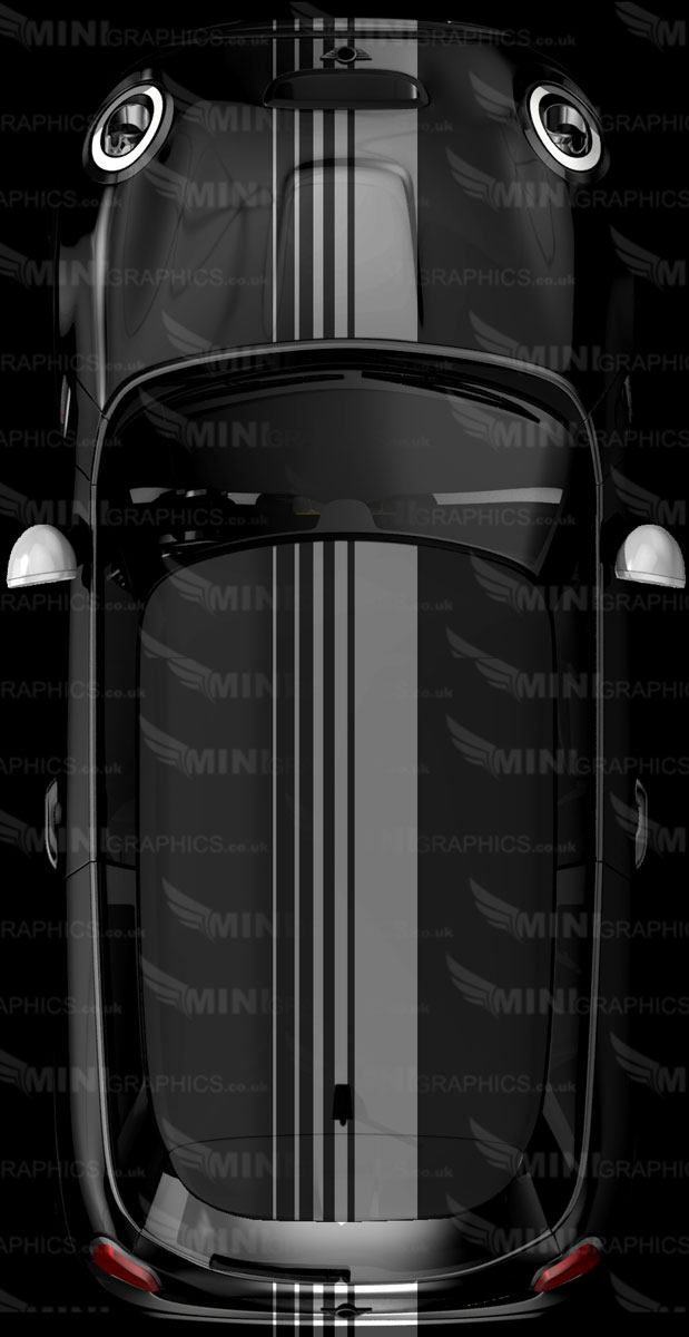 Lines Viper Kit cut from vinyl. The design shows the cars colour as the background. Silver vinyl on a black MINI. The kit comes with Front bumper, bonnet, roof, boot and rear bumper sections.