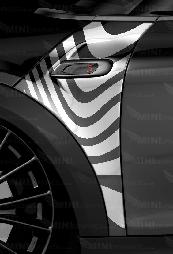 Zebra A-Panel Graphics pattern. The design shows the cars colour as the background. The image shows White vinyl on a Black MINI.